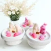 Charmante paashaasdecoratie met houten details en lint. Een handgemaakt voorjaarsaccent met een zachte Scandinavische uitstraling.