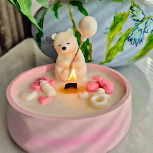 Deze lieve berenkaars brengt meteen een zacht en vrolijk gevoel in huis. Met de hand gegoten van 100% natuurlijke sojawas en stearine, volledig vegan en met oog voor detail. Een speels design dat warmte en rust uitstraalt, perfect voor een babyshower of als kraamcadeau.